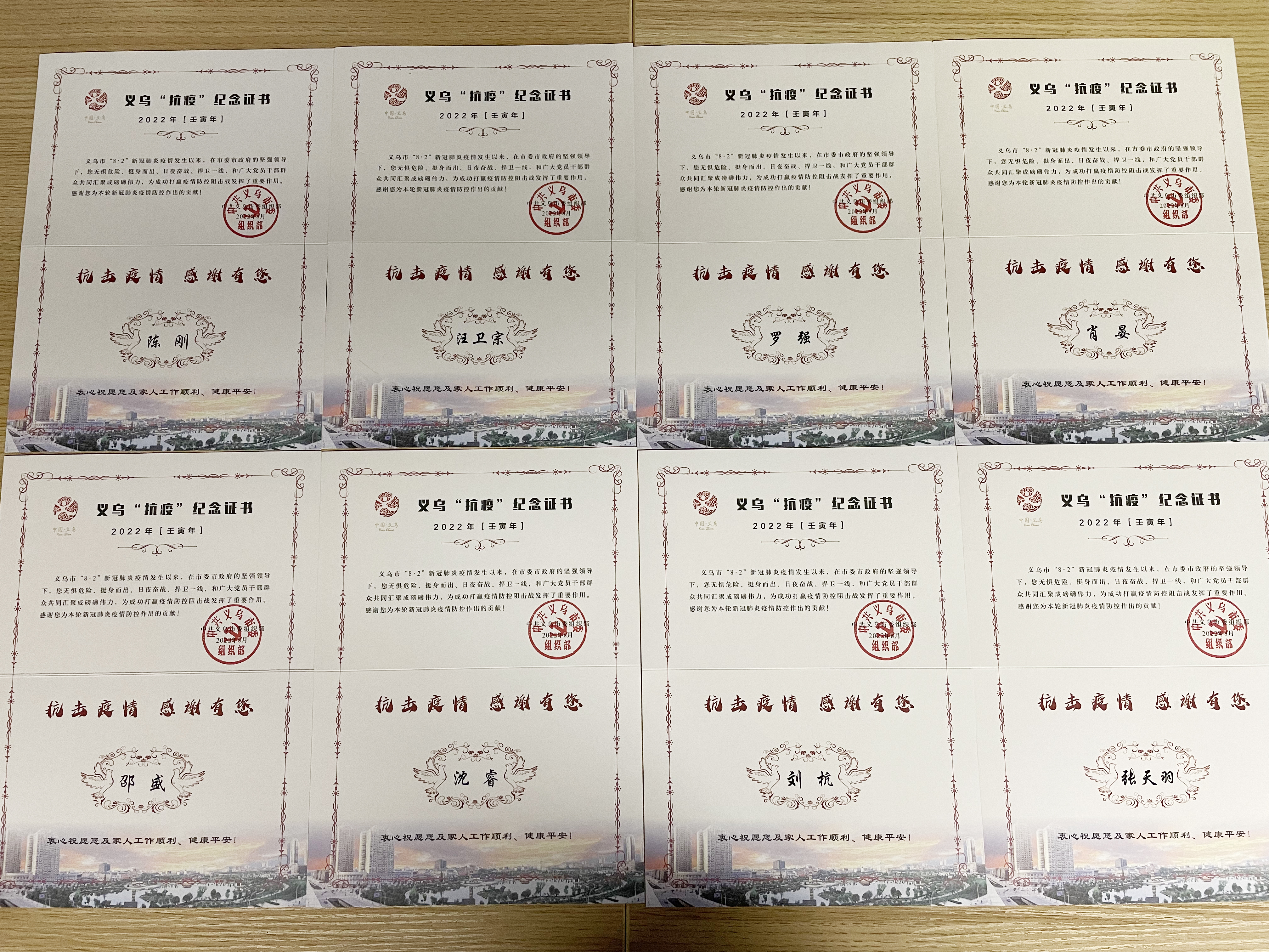 正是因為有無數來自各行各業的逆行者們,無懼危險、挺身而出、日夜奮戰,這次義烏才能如此迅速地打贏這場疫情防控阻擊戰,中共義烏市委組織部還為每一位在這次抗疫中作出過貢獻的個人,頒發了義烏“抗疫”紀念證書。
