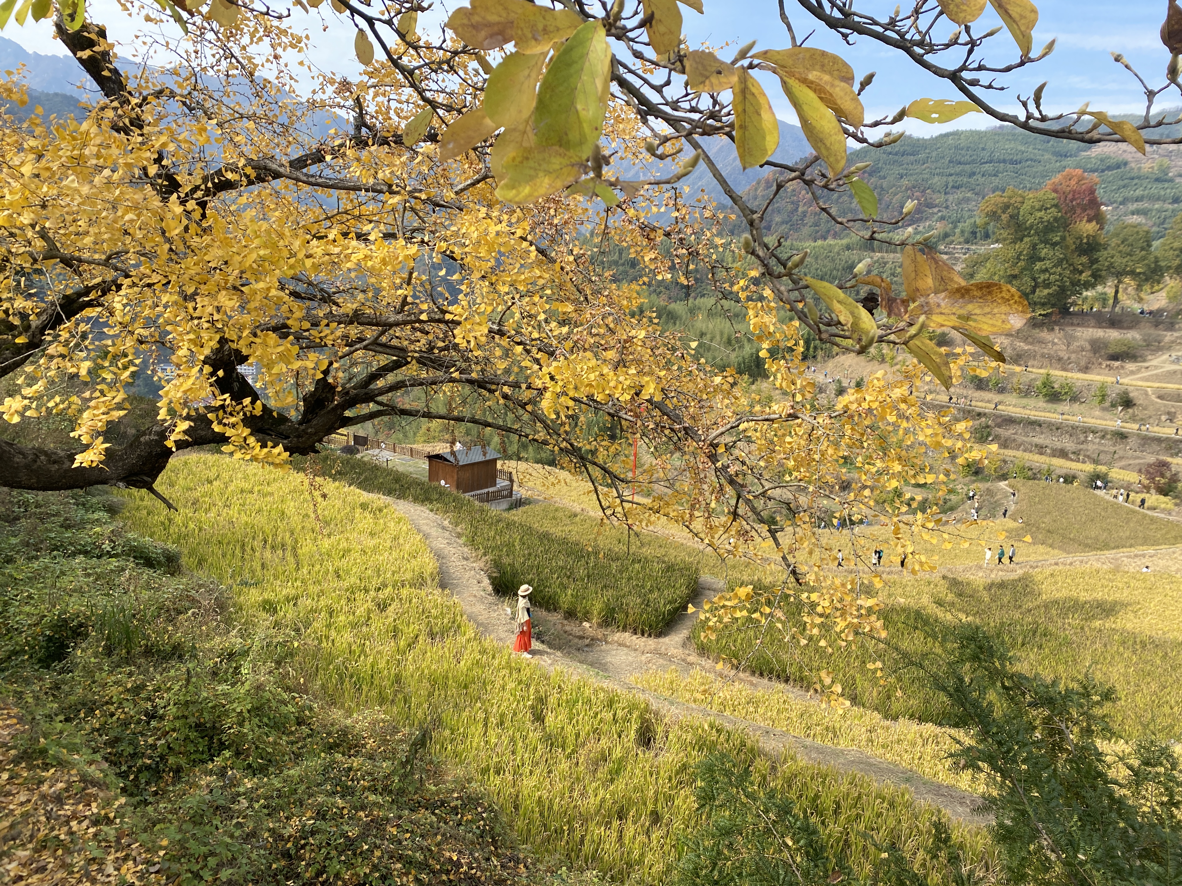 進(jìn)入臨川古道入口,拾階而上,金黃的銀杏葉、火紅的楓香葉、巨大的香榧樹,在山道邊隨風(fēng)搖擺,仿佛熱烈歡迎著和仁科技的小伙伴們。一眼望去,村子兩側(cè)分布著上世紀(jì)開墾的梯田,遍地金燦燦,沉甸甸的豐收景象。數(shù)百株珍稀古樹將村莊包圍,眼到之處,皆是美景。