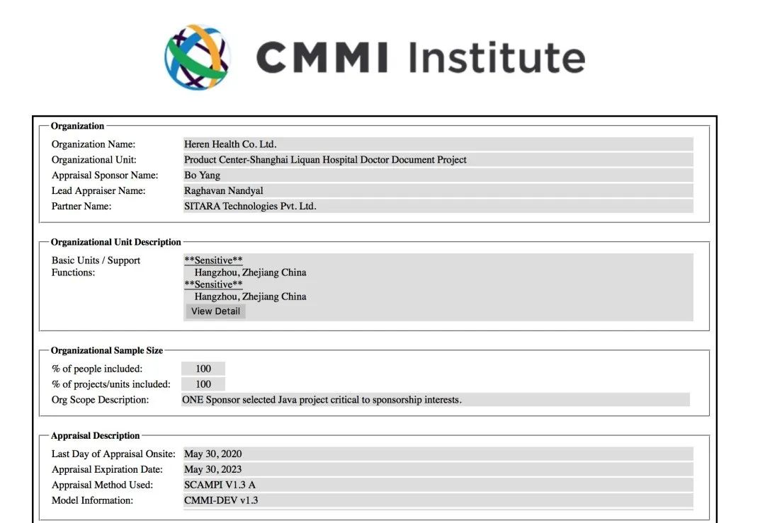 由于疫情關系,本次評估全程采用了遠程評估方式。主評估師和ATM小組全面考察了和仁科技對CMMI5過程域的實踐情況,對于公司的軟件開發管理標準過程體系、過程改進實施情況、項目管理能力等都給予了充分的認可,一致認為和仁科技已達到CMMI5級目標。